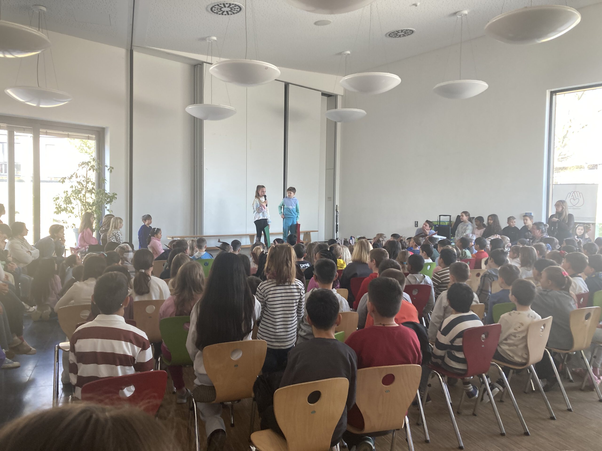 Den Auftakt machte die Klasse 3b mit dem Lied „Ich lieb den Frühling“, das im Kanon mitgesungen werden sollte. Sofort sorgte es für fröhliche Stimmung im Publikum.