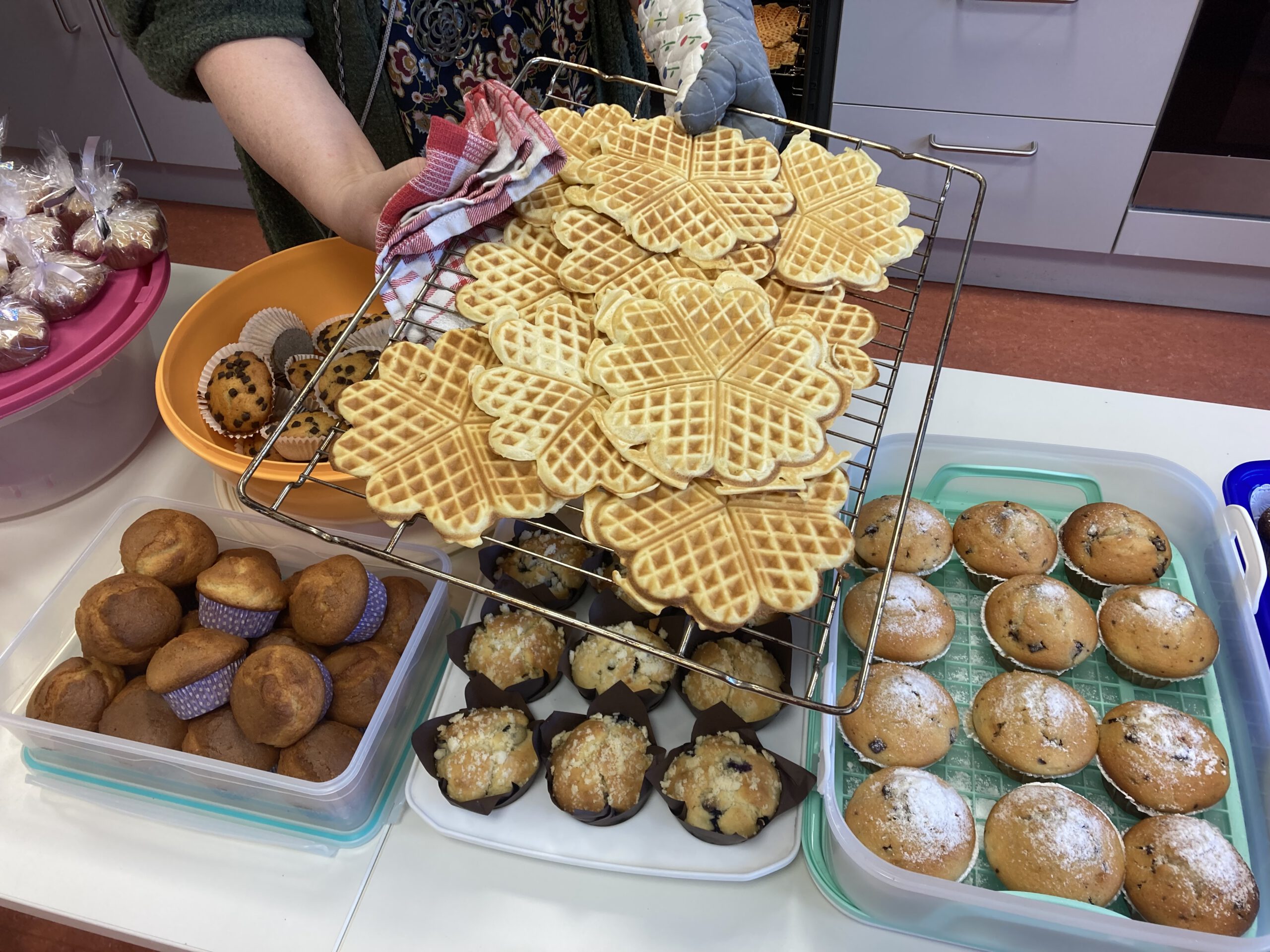 Parallel zum Basar bot der Förderverein einen Snackverkauf an, bei dem duftende Waffeln, leckere Muffins sowie heiße und kalte Getränke verkauft wurden.